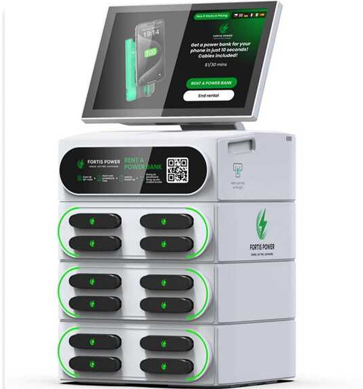 Simply scan the QR code on the station using the Fortis Power App, make a quick payment, and instantly receive a fully charged powerbank. No delays, no fuss — just fast and easy access to power on the go.